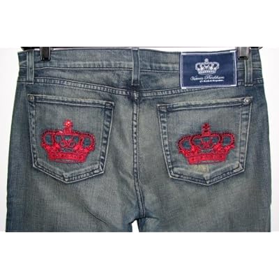 These are guaranteed authentic Rock & Republic L.A. crown jeans. The wash is vapor and crowns are red with red crystals. These are one of the rarest and most difficult colors to find. Size is 31 and they measure 34 waist, 8.5 rise, and 36.5 inseam.